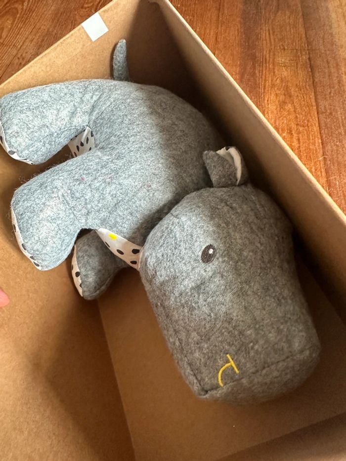 Peluche en feutrine grand hippopotame gris 35cm coffret cadeau Premaman doudou modern pop - photo numéro 1