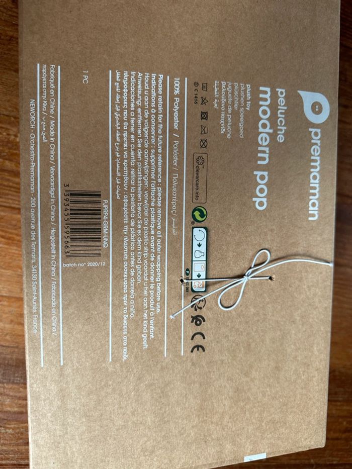 Peluche en feutrine grand hippopotame gris 35cm coffret cadeau Premaman doudou modern pop - photo numéro 4