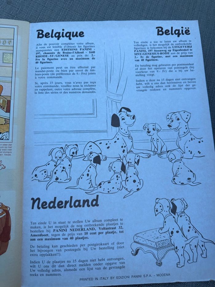 Album vignettes Panini grand format complet ancien Walt Disney Les 101 dalmatiens chiens