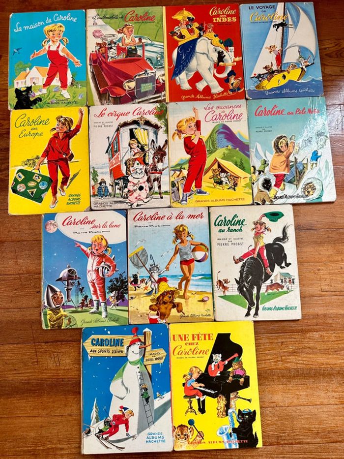 Lot exceptionnel de 13 livres Caroline état satisfaisant anciens bd Pierre Probst albums