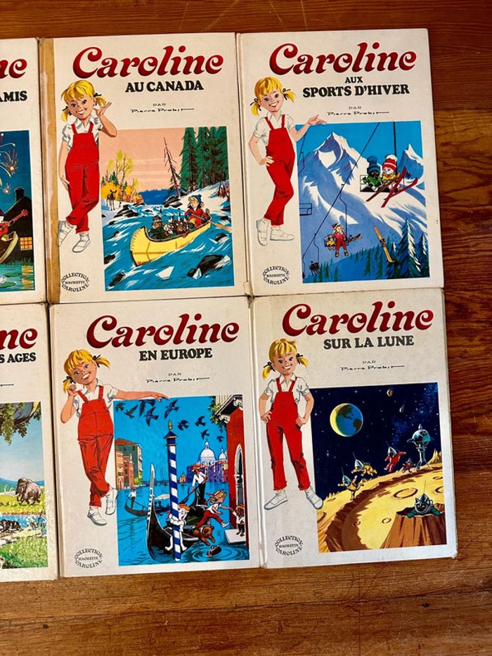 Tous les livres sont complets Envoi rapide et soigné Lot non dissociable et non négociable Liste des titres : Caroline invite ses amis Au Canada Aux sports d’hiver À travers les âges En Europe Sur la Lune