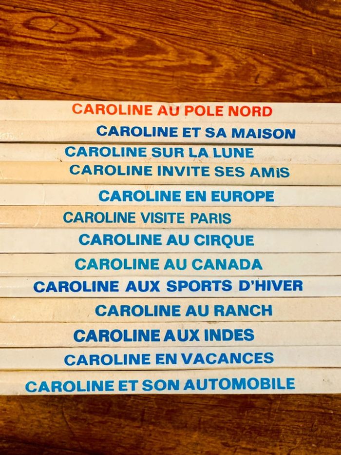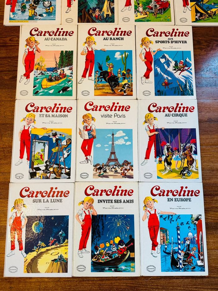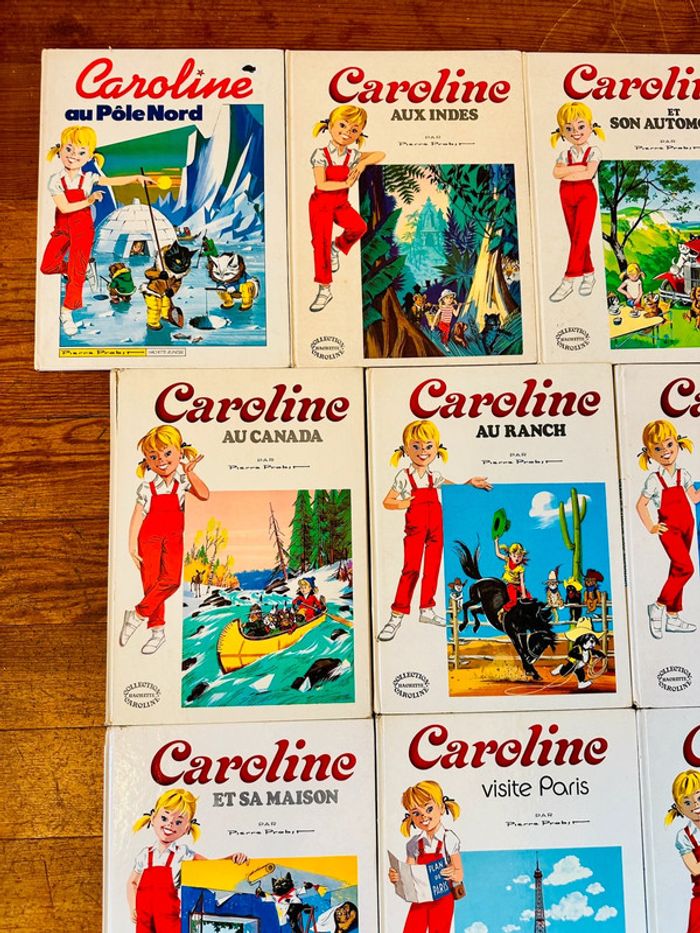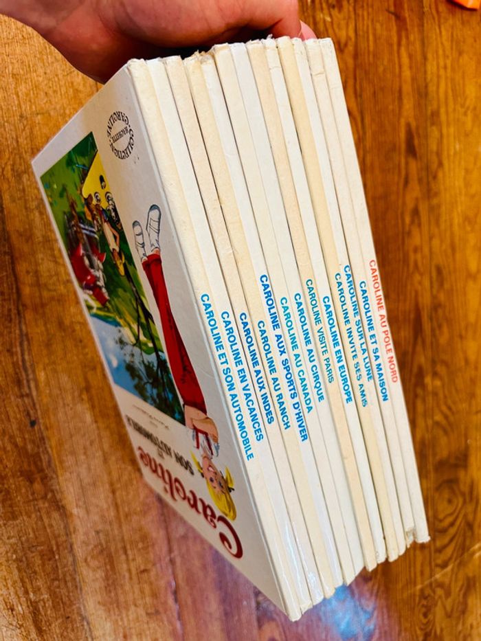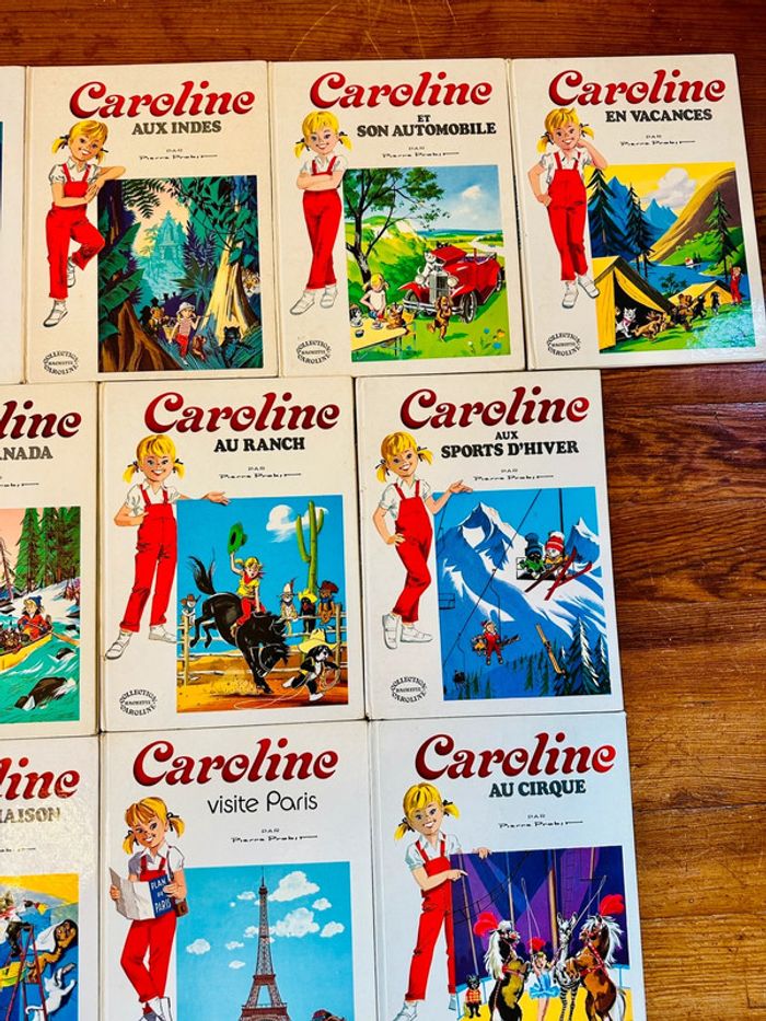 Tous les titres sont complets et en bon état pour des ouvrages de plus de 50 ans ! Lot non dissociable et non négociable Envoi rapide et soigné ☺️🧡 Liste des titres : Caroline au Pôle Nord Et sa maison Sur la Lune Invite ses amis En Europe Visite Paris Au cirque Au Canada Aux sports d’hiver Au ranch Aux Indes En vacances Et son automobile
