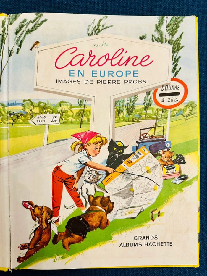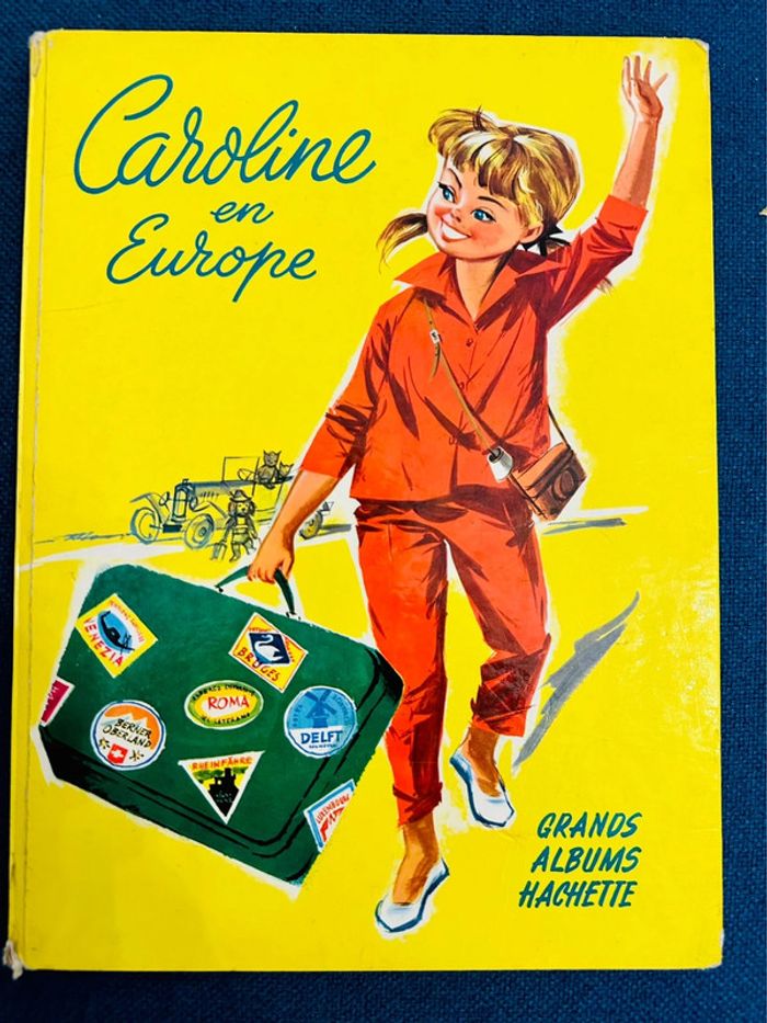 Livre Caroline en Europe ancien jaune Grands albums Hachette bd Pierre Probst