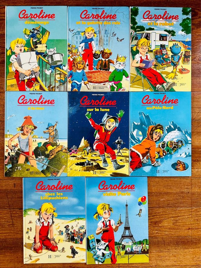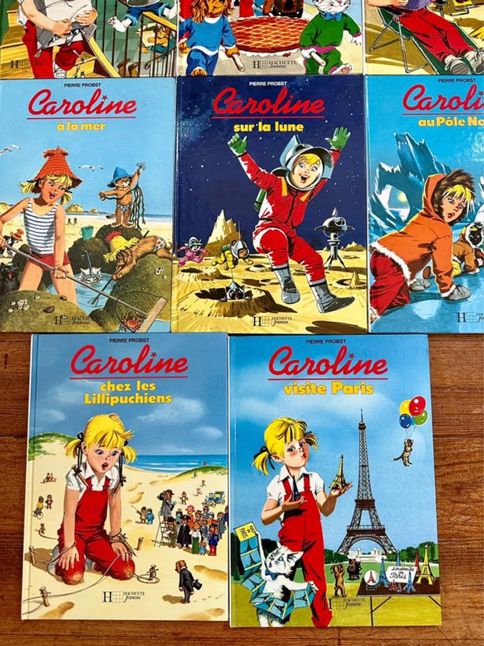 Complets en très bel état Livres vintage Envoi rapide et soigné Liste des titres : Caroline à la mer Sur la Lune Au pôle Nord Chez les lillipuchiens Visite Paris Déménage Et la galette des rois Et le robot
