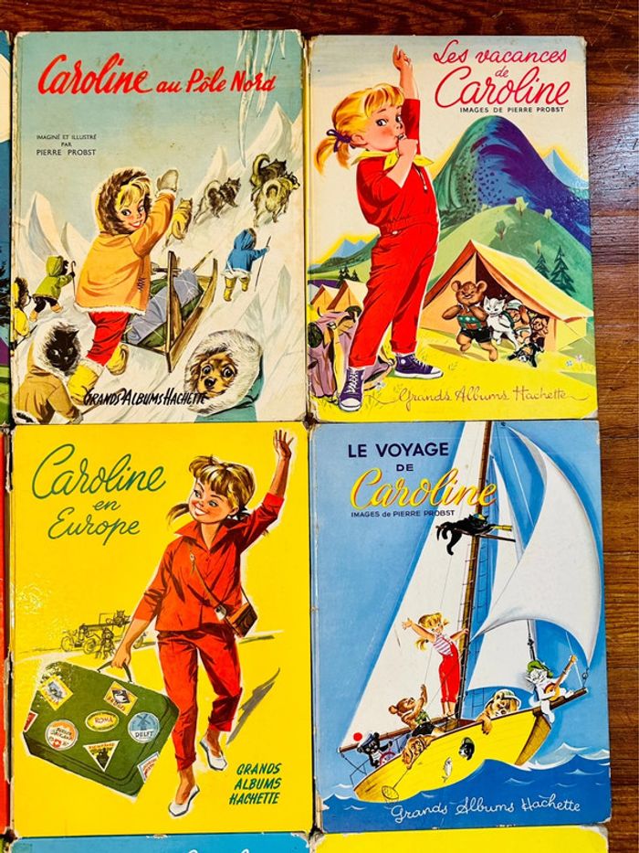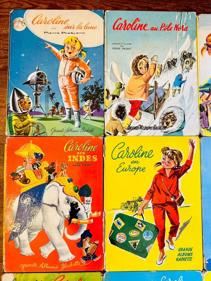 Lot complet état satisfaisant Illustrations juste magnifiques des premières illustrations de Pierre Probst ! Liste des titres du lot : Caroline sur la Lune Caroline au Pôle Nord Les vacances de Caroline Caroline aux Indes Caroline en Europe Le voyage de Caroline L’automobile de Caroline La maison de Caroline Une fête chez Caroline