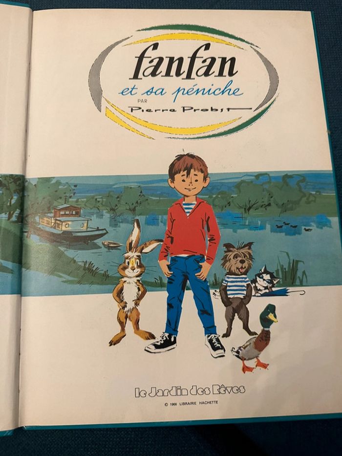 1977 Livre ancien Fanfan et sa péniche Pierre Probst (Caroline) Hachette Jardin des rêves