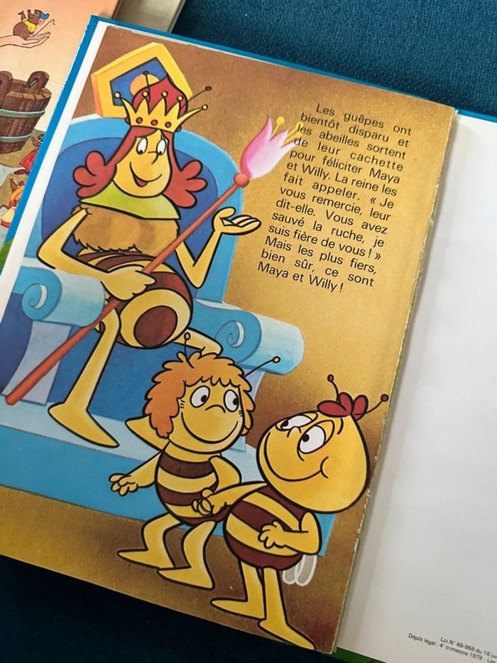 1979 Livre ancien Maya l’abeille sauve la ruche TF1 télé librairie deux coqs d’or