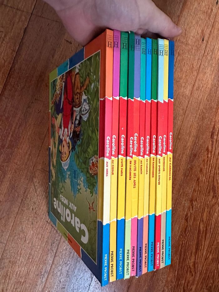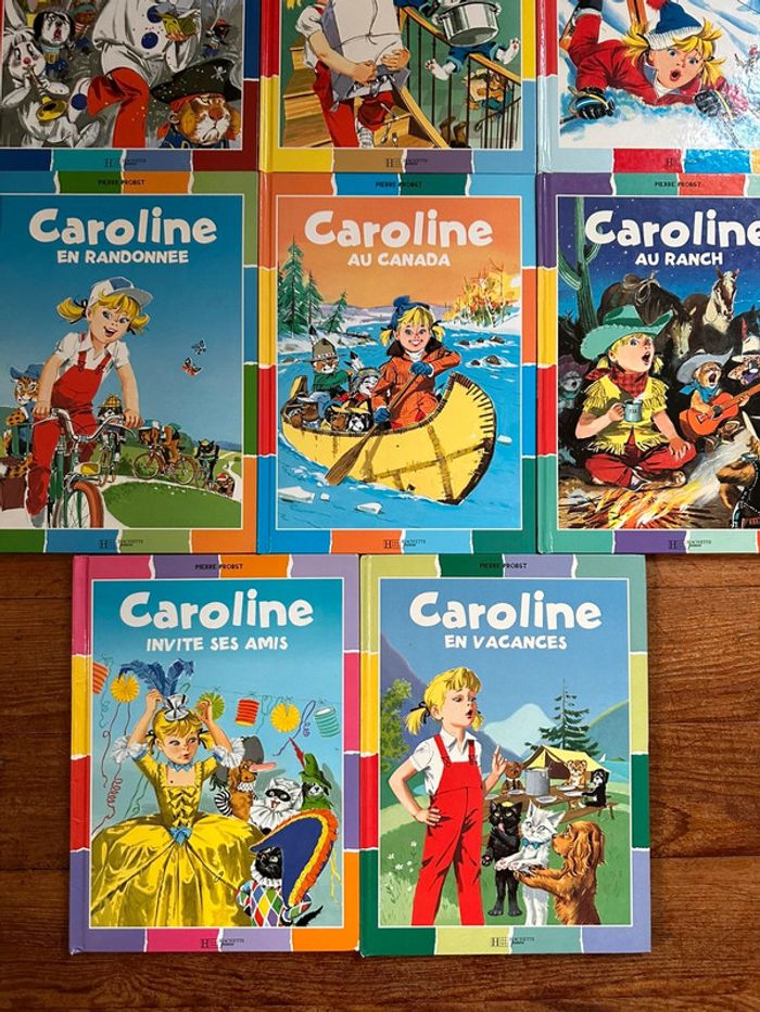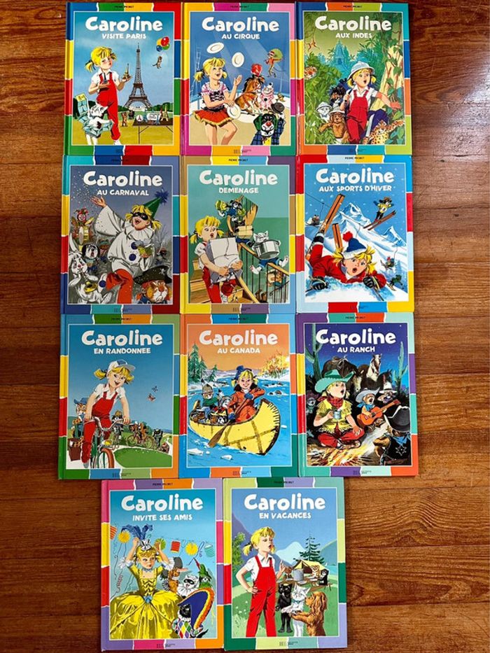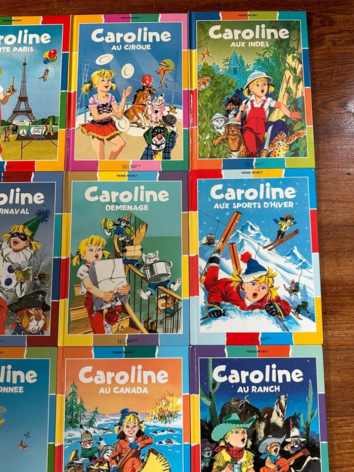 Envoi rapide et soigné Lot indissociable Liste des titres : Caroline visite Paris Au cirque Aux Indes Au carnaval Déménage Aux sports d’hiver En randonnée Au Canada Au ranch Invite ses amis En vacances