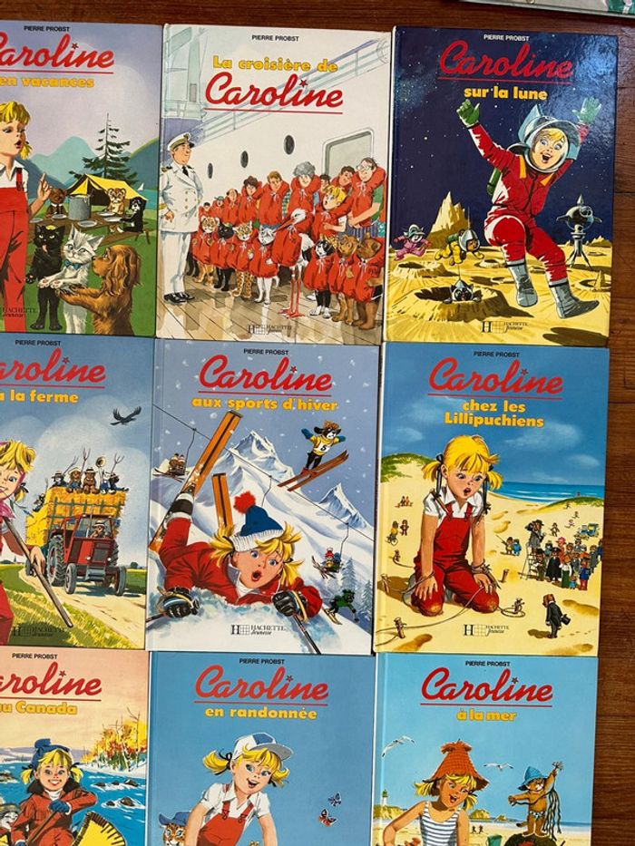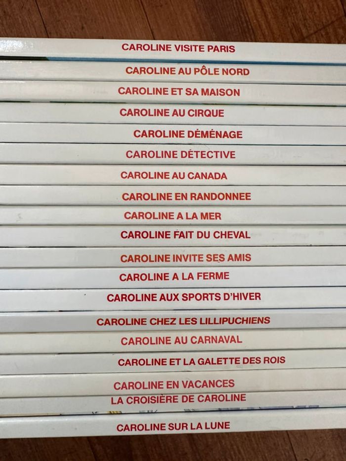 Envoi rapide et très soigné Livres en très bon état !!! Caroline visite Paris Au pôle Nord Et sa maison Au cirque Déménage Détective Au Canada En randonnée A la mer Fait du cheval Invite ses amis A la ferme Aux sports d’hiver Chez les lillipuchiens Au Carnaval Et la galette des rois En vacances La croisière Sur la Lune