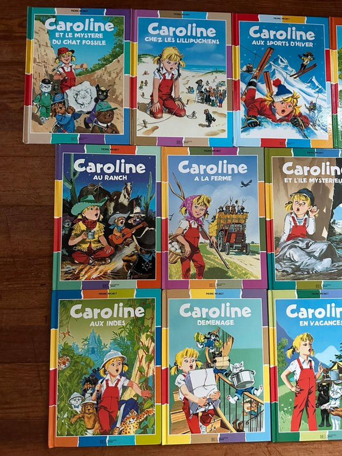 Tous en très bon état !!!!! Envoi rapide et soigné Liste des titres du lot : Caroline au Ranch A la ferme Et l’île mystérieuse Aux Indes Déménage En vacances Et le mystère du chat fossile Chez les lillipuchiens Aux sports d’hiver Et sa maison