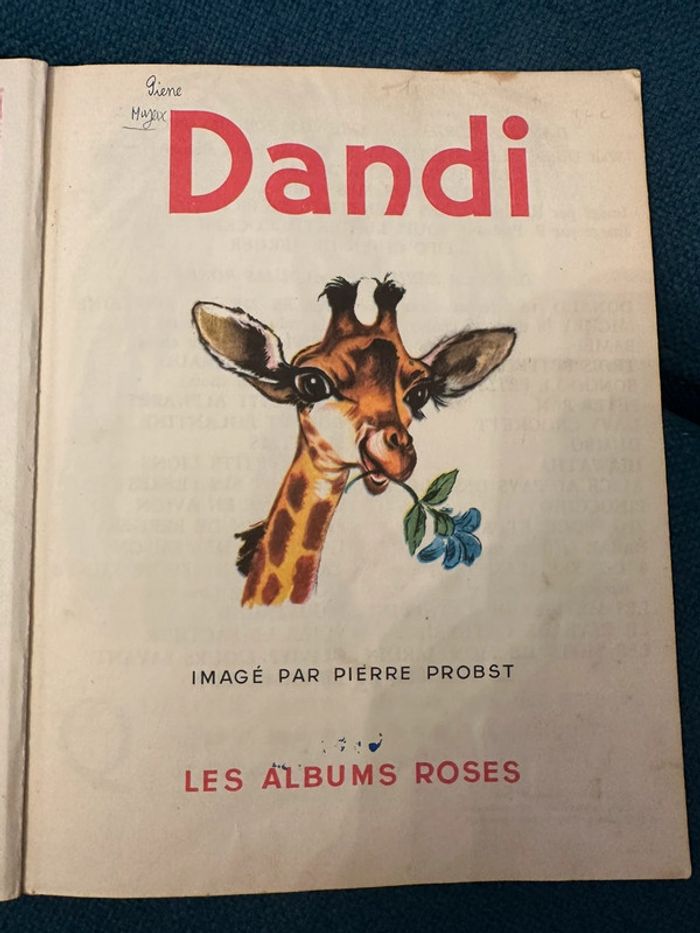 Livre carton ancien 1958 Dandi Les albums roses girafe lions Pierre probst auteur Caroline