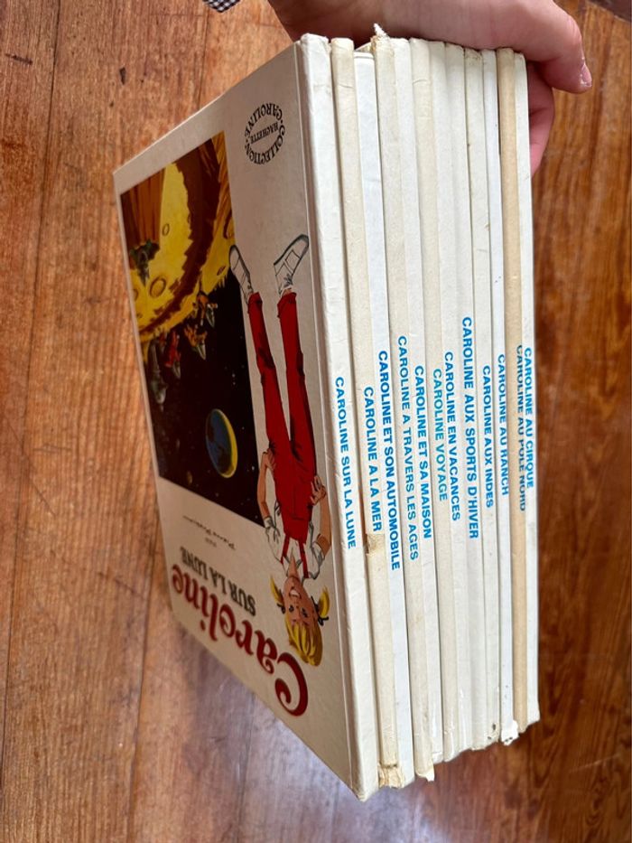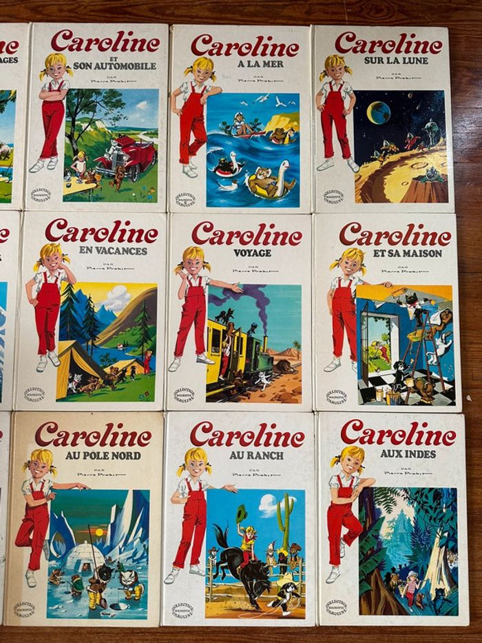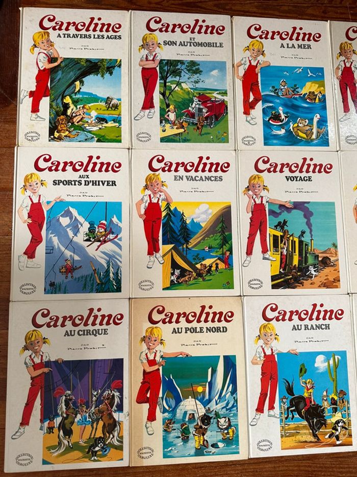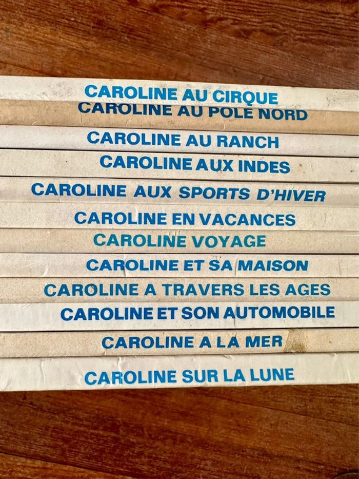 Lot de livres qui ont plus de 50 ans!!! Rare Envoi rapide et soigné Caroline au cirque Au pôle Nord Au ranch Aux Indes Aux sports d’hiver ski En vacances Voyage Et sa maison A travers les âges Et son automobile A la mer Sur la Lune