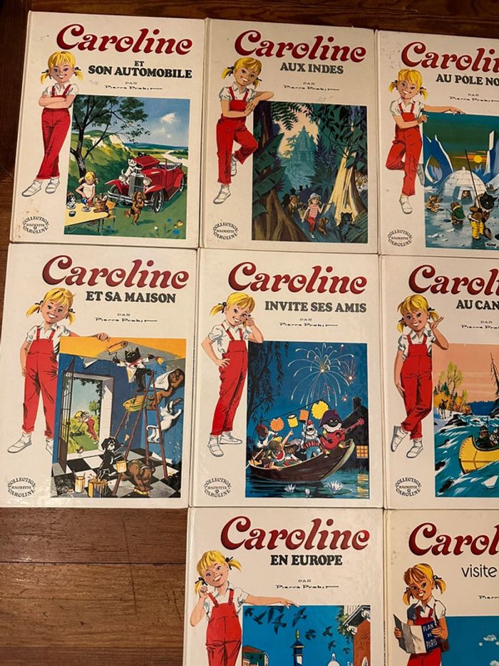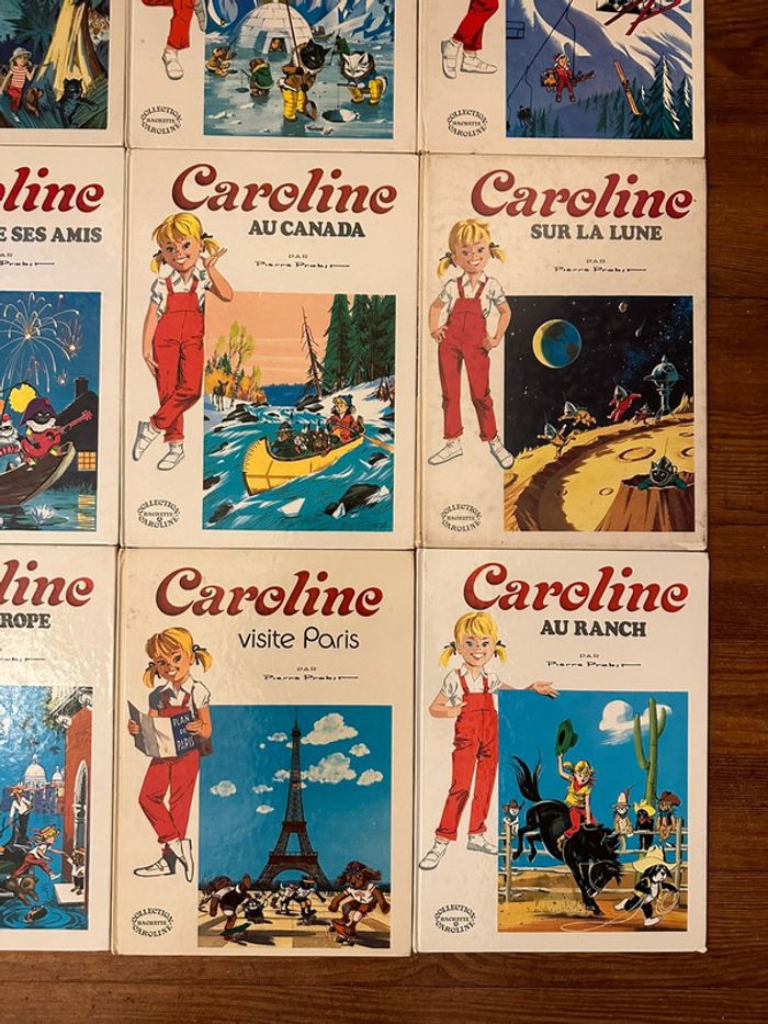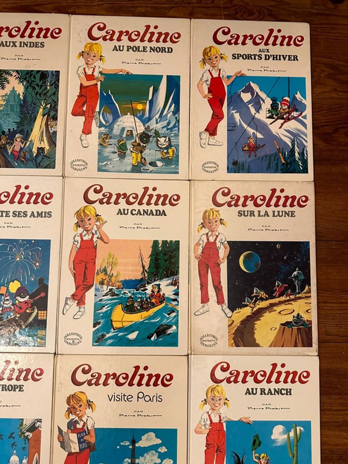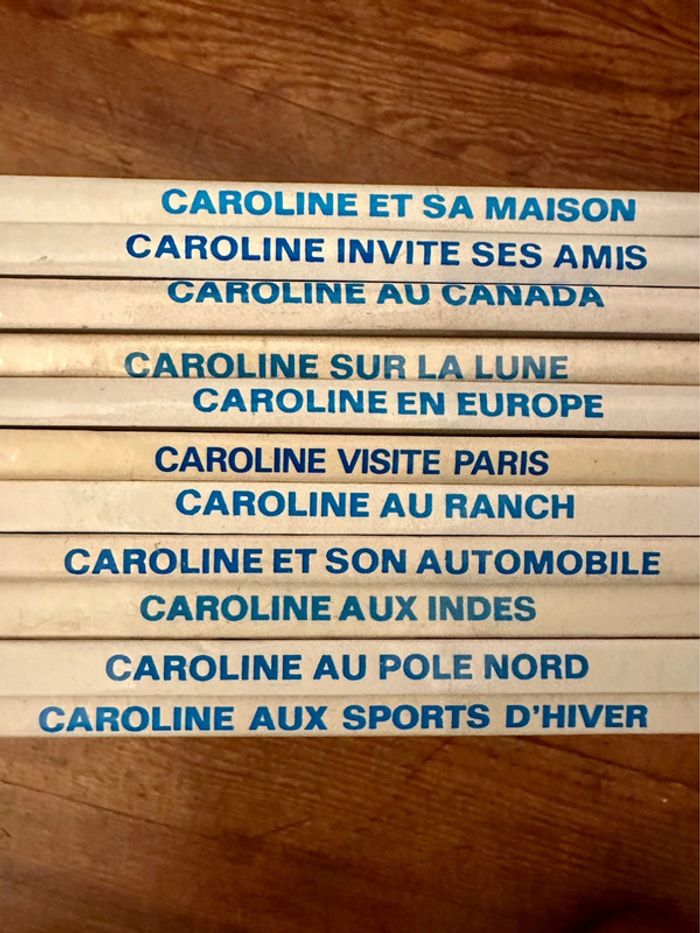 En excellent état !! Plus de 50 ans d’ancienneté Lot indissociable Envoi rapide et soigné Liste des titres : Caroline et son automobile Aux Indes Au pôle Nord Aux sports d’hiver Et sa maison Invite ses amis Au Canada Sur la Lune En Europe Visite Paris Au ranch
