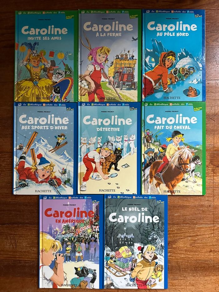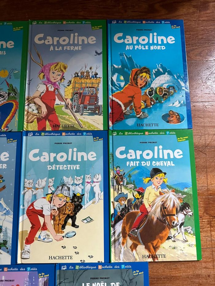 Certains titres sont difficiles à trouver Prix pour le lot Caroline en Amérique USA Le Noël de Caroline Caroline fait du cheval Détective Aux sports d’hiver Au pôle Nord A la ferme Invite ses amis fête