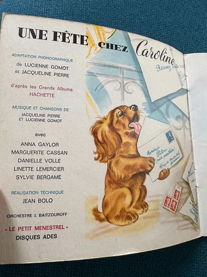 Livre disque Une fête chez Caroline Pierre Probst Petit Ménestrel Disques Adès Hachette ancien