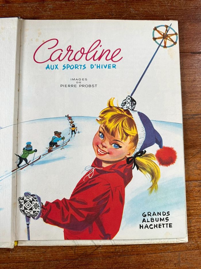 1959 Livre ancien Caroline aux sports d’hiver ski Grands albums Hachette bd Pierre Probst vintage