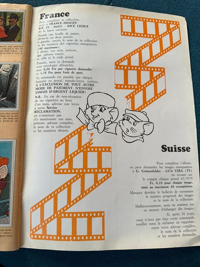 Album Panini complet Walt Disney Bernard et Bianca souris ancien vintage stickers autocollants