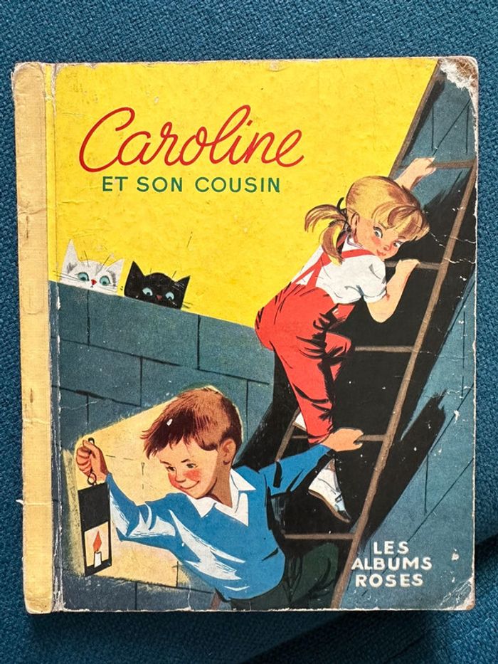 1961 Livre carton ancien Caroline et son Cousin Les Albums Roses Pierre Probst