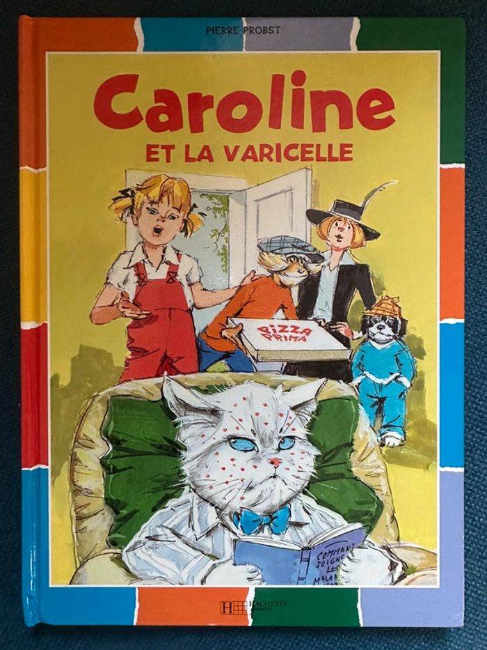 Caroline et la Varicelle pouf chat blanc malade livre bd album Pierre probst vintage
