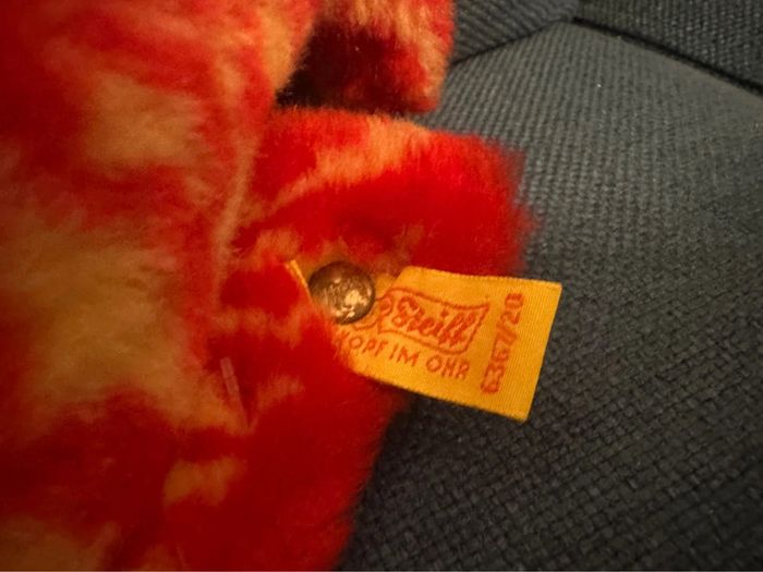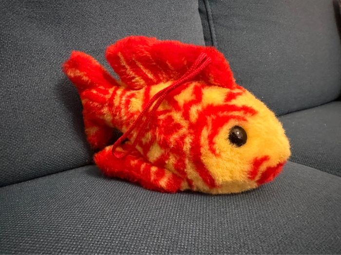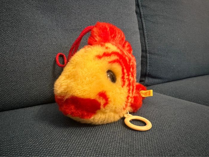 Peluche Steiff Poisson Clown doudou musical rouge jaune boîte musique 22cm collection