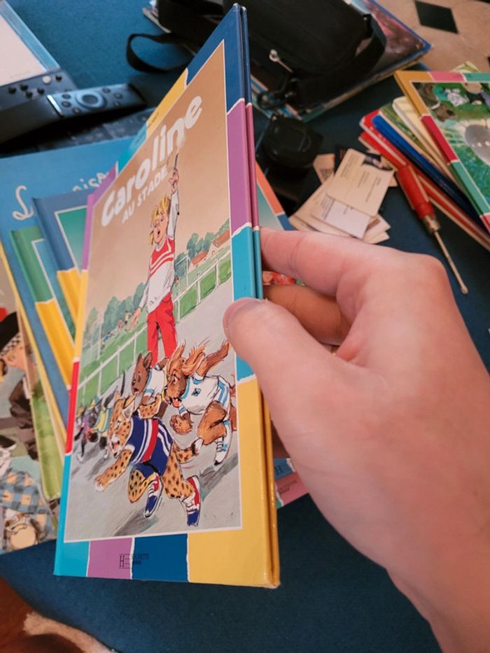 Livre rare Caroline au Stade Pierre Probst Hachette Jeunesse Album collection multicolore couleurs