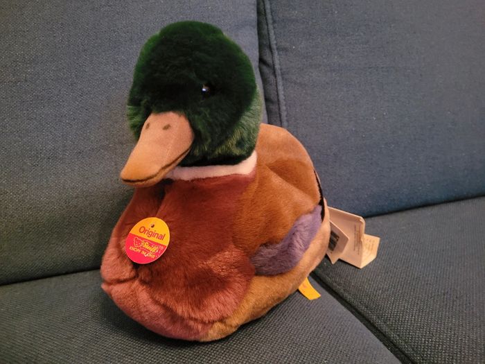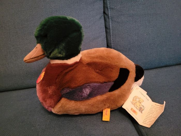 RARE Steiff Peluche ancienne Canard colvert oiseau original étiquette collection 30cm