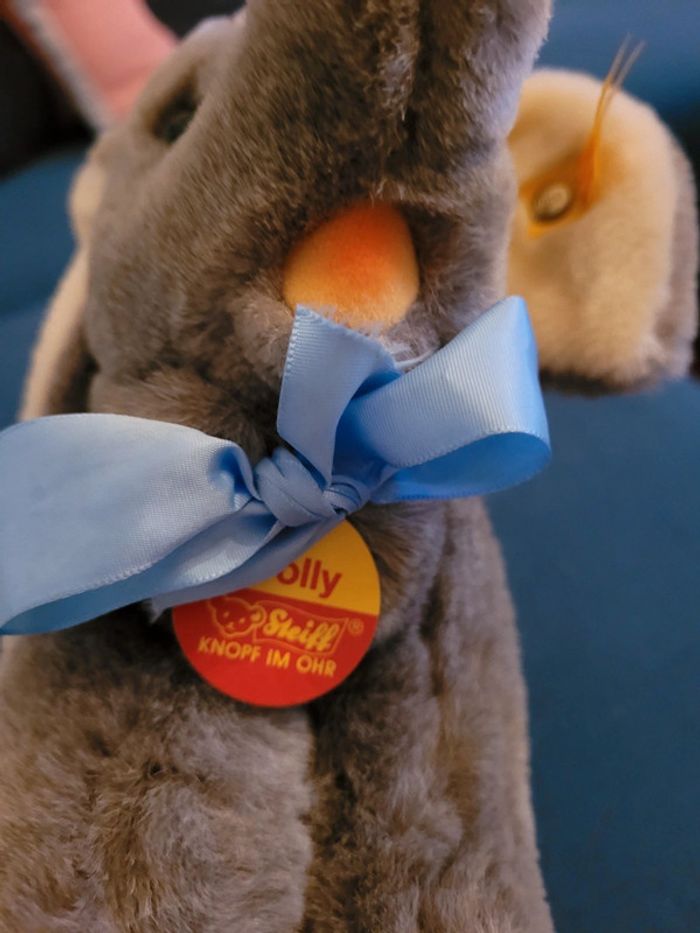 RARE Peluche Éléphant Steiff 28cm gris ancien noeud papillon étiquette jaune collection doudou - photo numéro 8