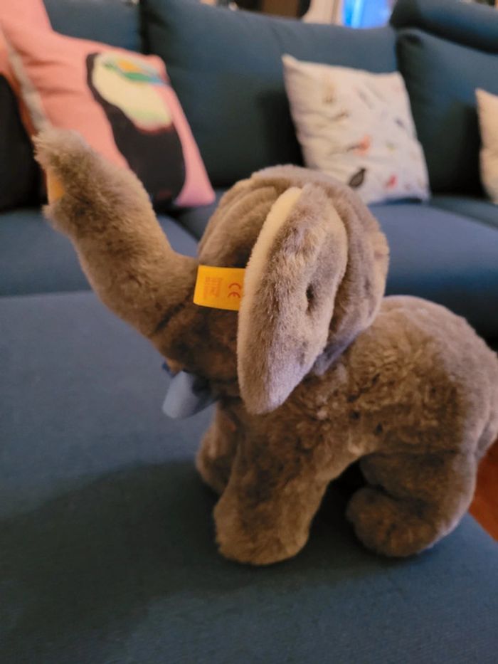 RARE Peluche Éléphant Steiff 28cm gris ancien noeud papillon étiquette jaune collection doudou - photo numéro 3