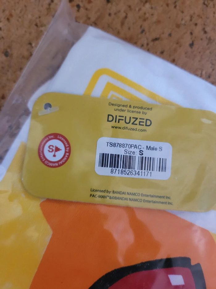 NEUF T-shirt PacMan T-shirt Pac-Man S difuzed Bandai Namco blanc jaune