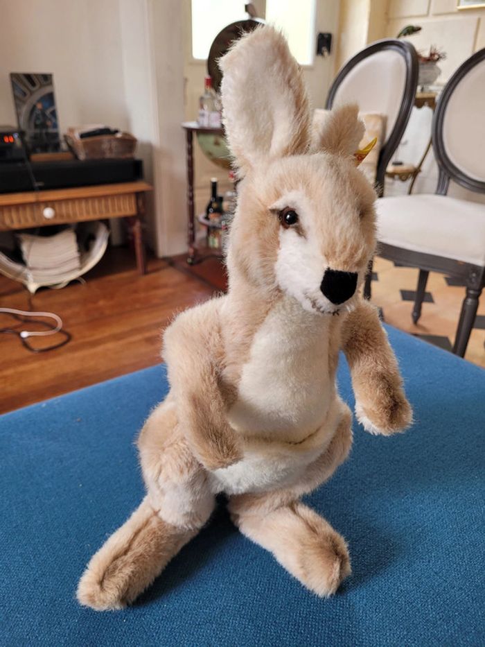 RARE Peluche Kangourou Steiff debout 38cm collection poche Australie beige blanc - photo numéro 1