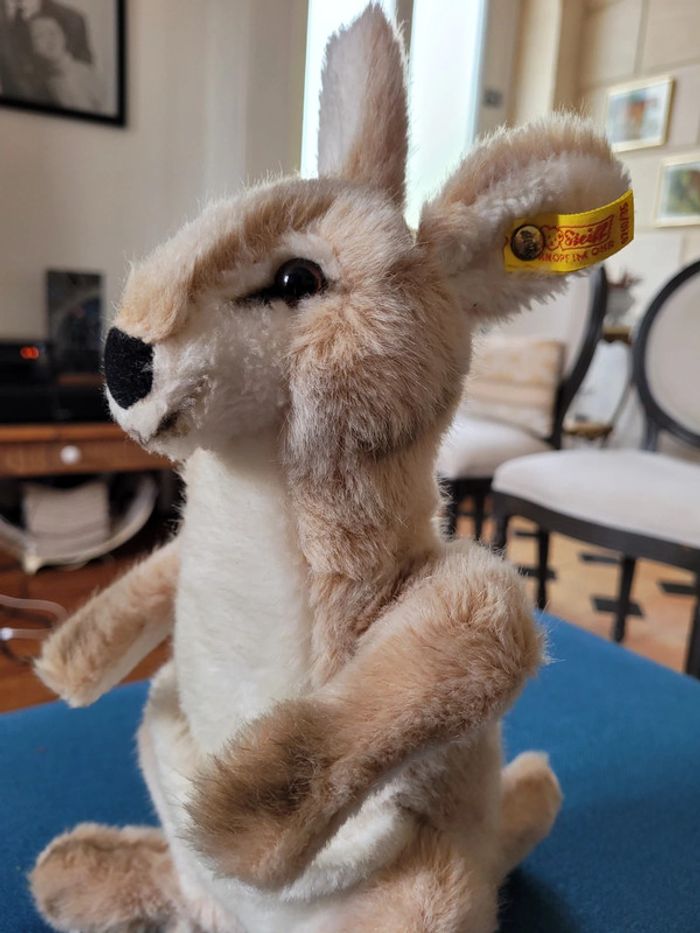 RARE Peluche Kangourou Steiff debout 38cm collection poche Australie beige blanc - photo numéro 7