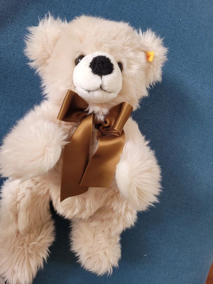 Grand Ours Steiff 42cm beige noeud marron collection peluche blanc crème clair expressif