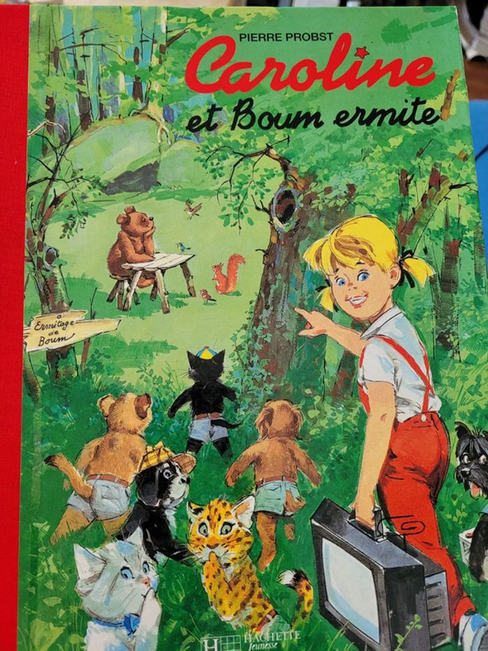 Livre rare relié rouge Caroline et Boum Ermite Pierre Probst Hachette Jeunesse Grand Album