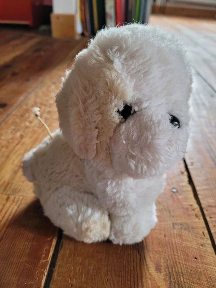 RARE Boîte à musique "Douce Nuit" Boulgom Peluche Chien blanc beige Made in France doudou - photo numéro 3