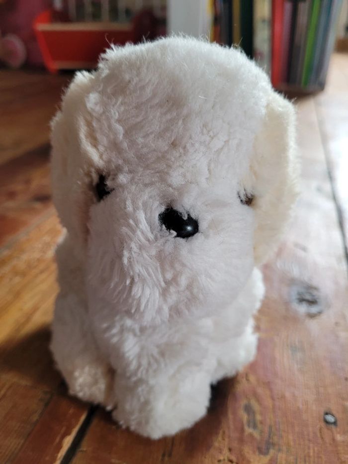 RARE Boîte à musique "Douce Nuit" Boulgom Peluche Chien blanc beige Made in France doudou - photo numéro 5