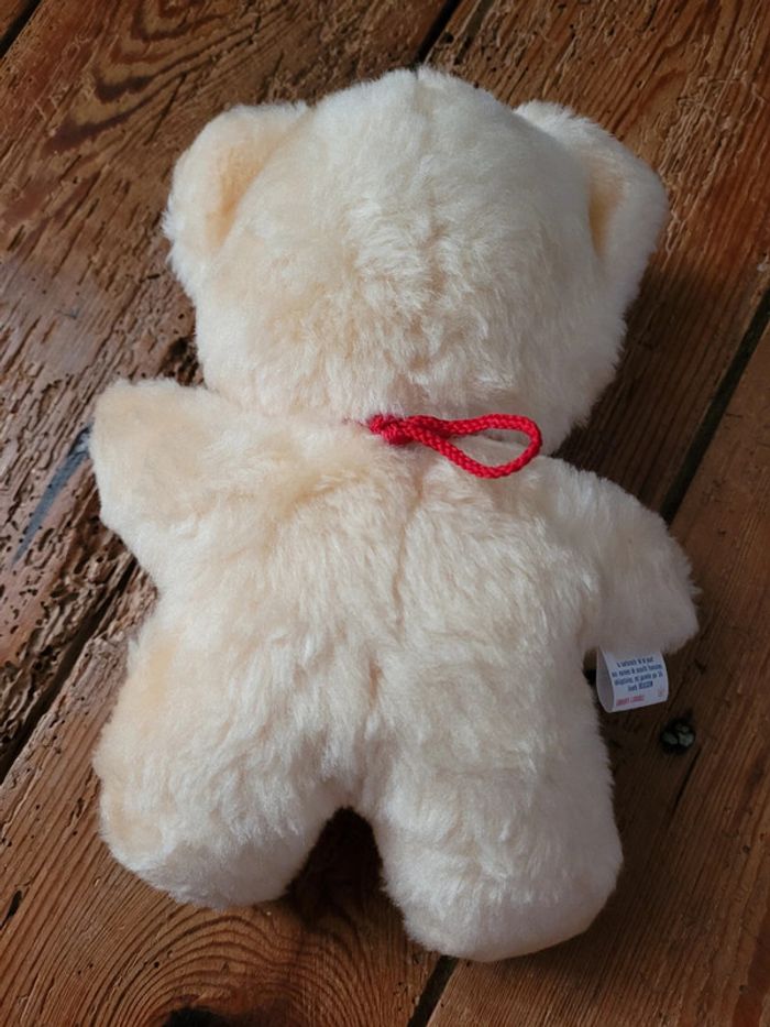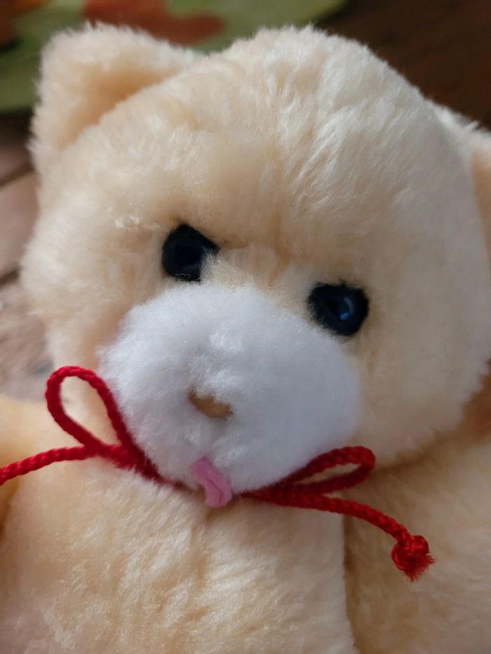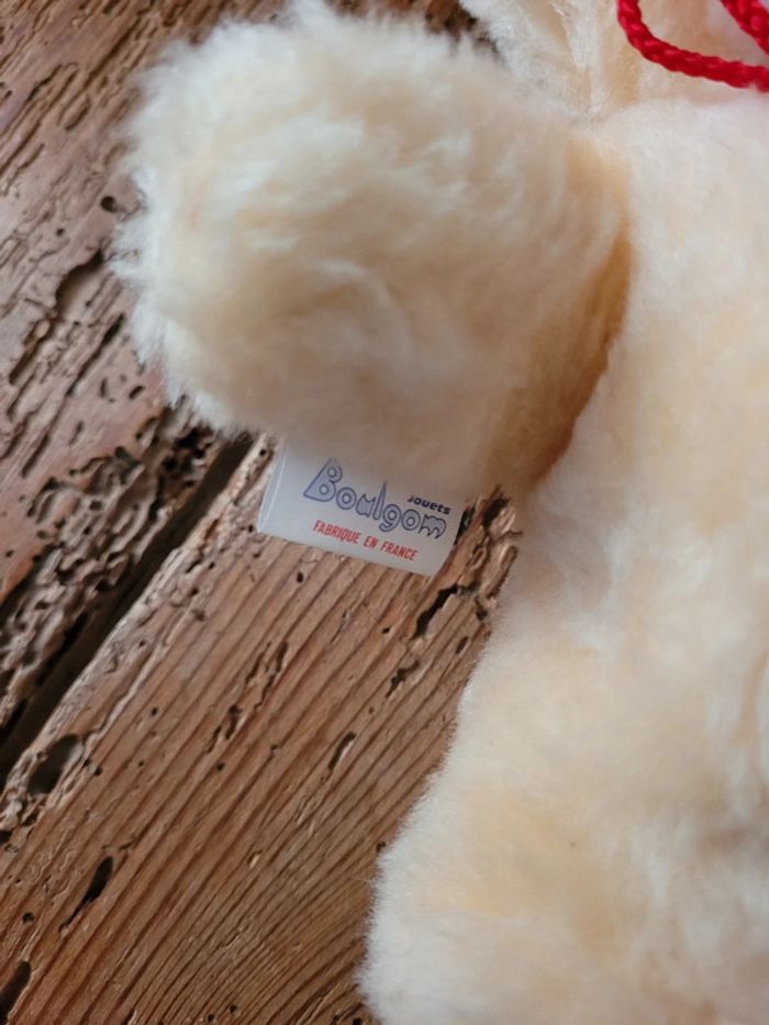 RARE Chat ours Boulgom pêche orange noeud rouge 22cm peluche grelot collection Made in France - photo numéro 4