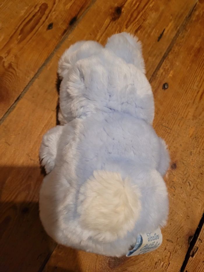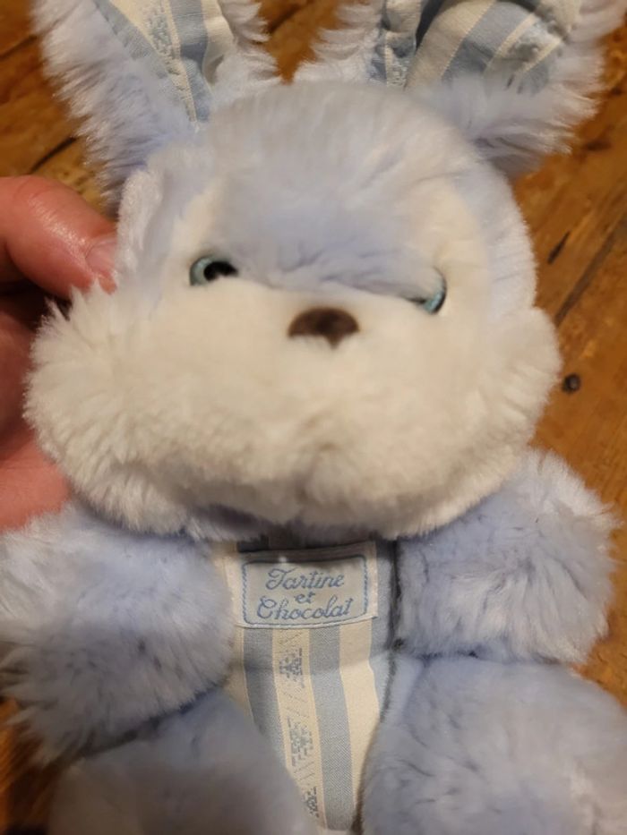 RARE Peluche lapin Tartine et Chocolat bleu ciel grelot hochet France Layette doudou 27cm - photo numéro 4