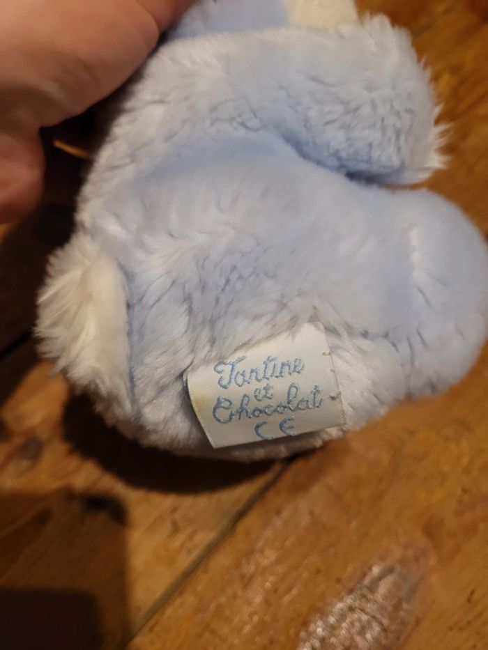 RARE Peluche lapin Tartine et Chocolat bleu ciel grelot hochet France Layette doudou 27cm - photo numéro 3