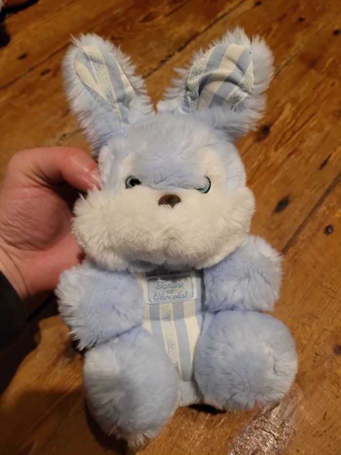 RARE Peluche lapin Tartine et Chocolat bleu ciel grelot hochet France Layette doudou 27cm - photo numéro 1