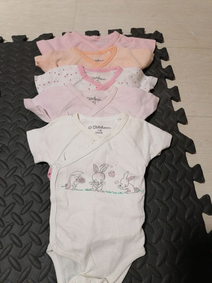 Lot de 5 bodies manches courtes en coton Couleurs : rose, blanc, orange Très bon état