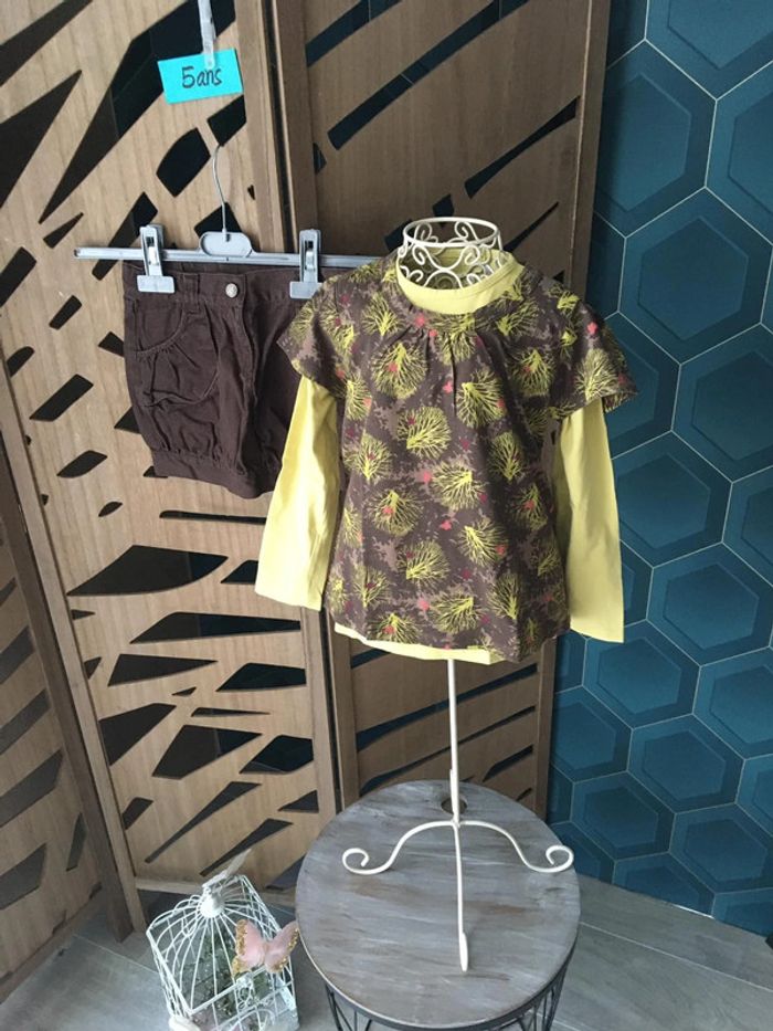 Ensemble 3 pièces fille 5 ans shirt blouse et sous pull - photo numéro 1