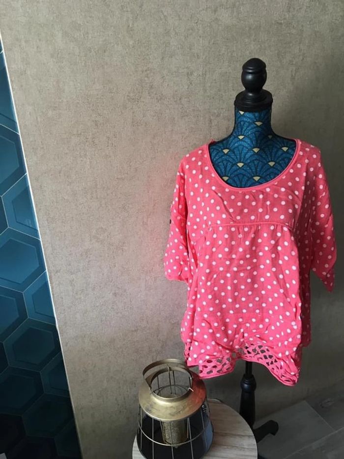 Blouse tunique à pois femme 46/48 couleur framboise et blanc