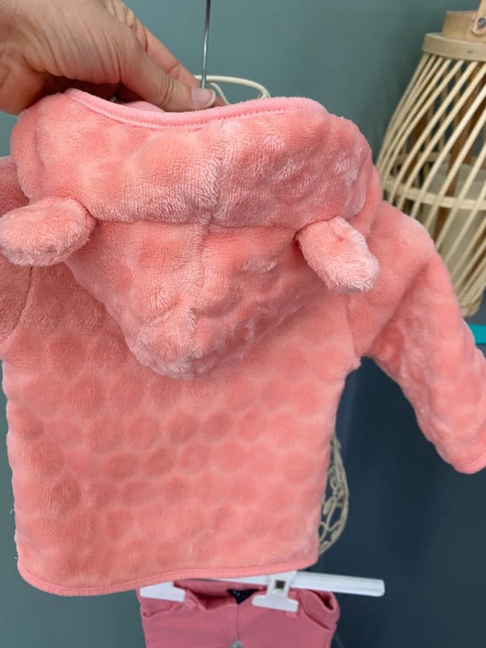 Ensemble fille 1 mois pantalon t-shirt et veste polaire à capuche - photo numéro 4