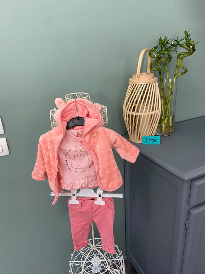 Ensemble fille 1 mois pantalon t-shirt et veste polaire à capuche - photo numéro 1