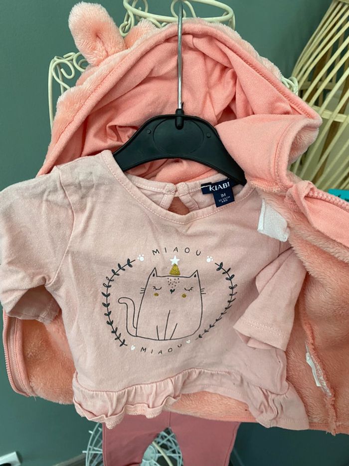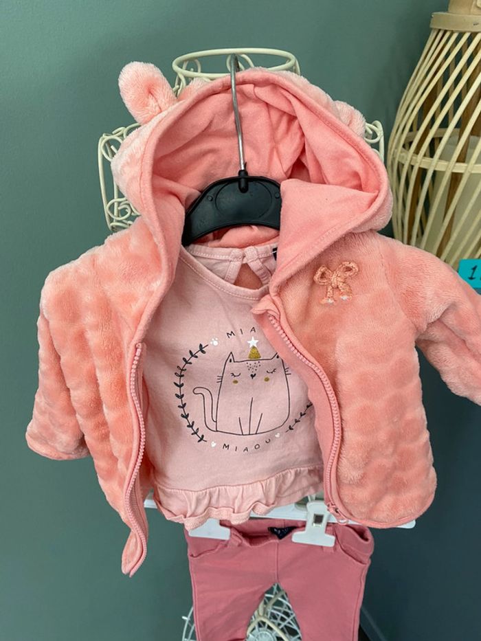 Ensemble fille 1 mois pantalon t-shirt et veste polaire à capuche - photo numéro 3