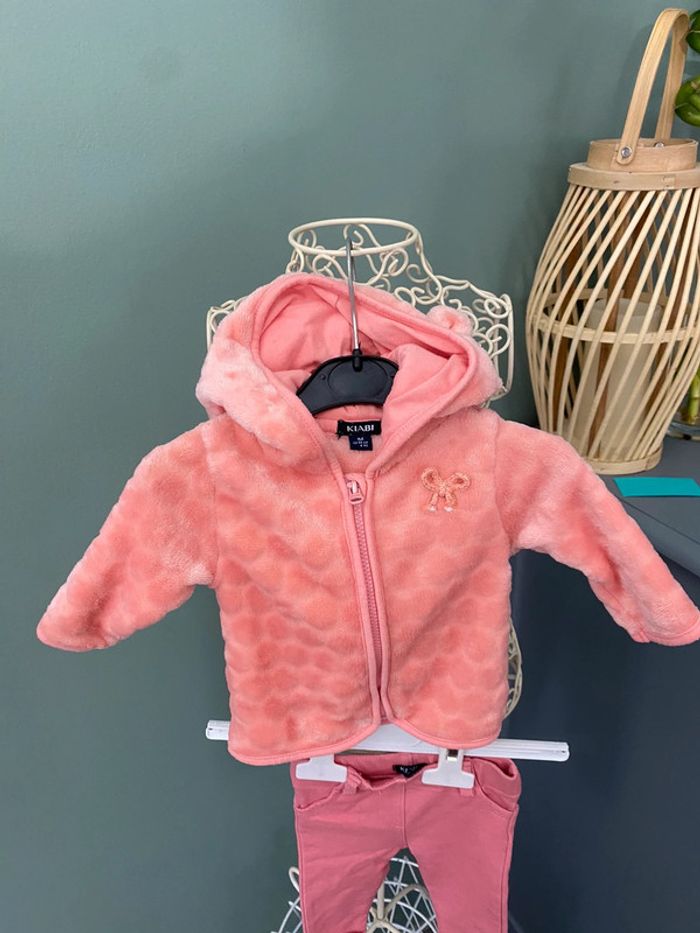 Ensemble fille 1 mois pantalon t-shirt et veste polaire à capuche - photo numéro 2