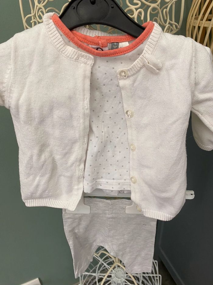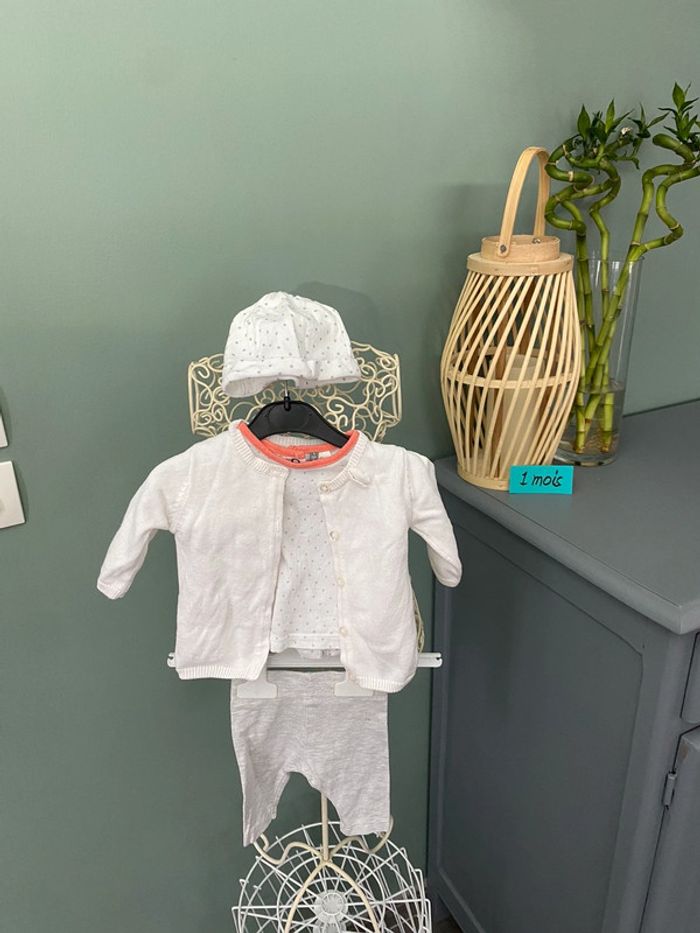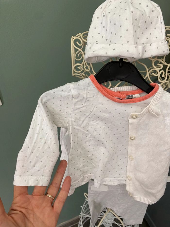 Ensemble fille 1 mois haut legging gilet et bonnet - photo numéro 1