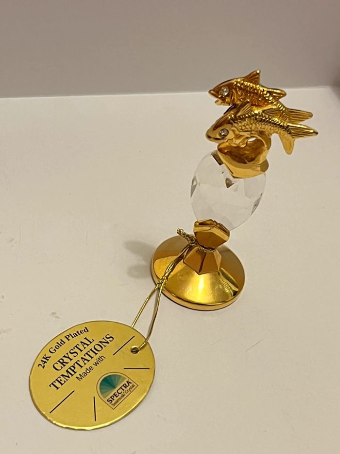 Poissons avec Crystal astrologie 24K plaqué Or Pour l’achat de ce Crystal , un cadeau surprise vous ai offert.