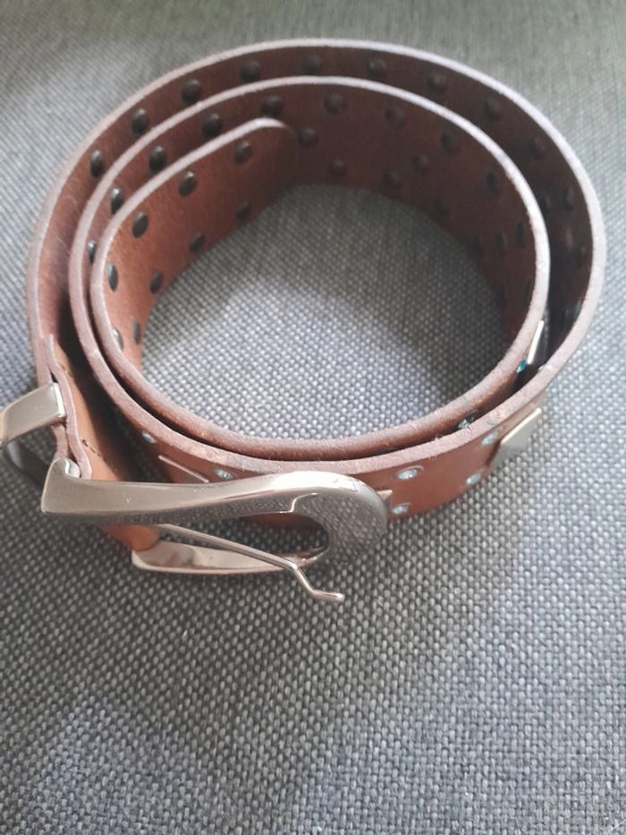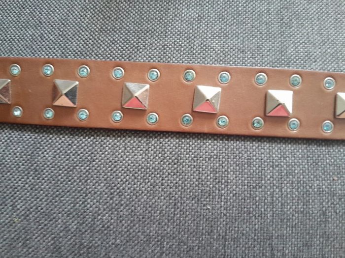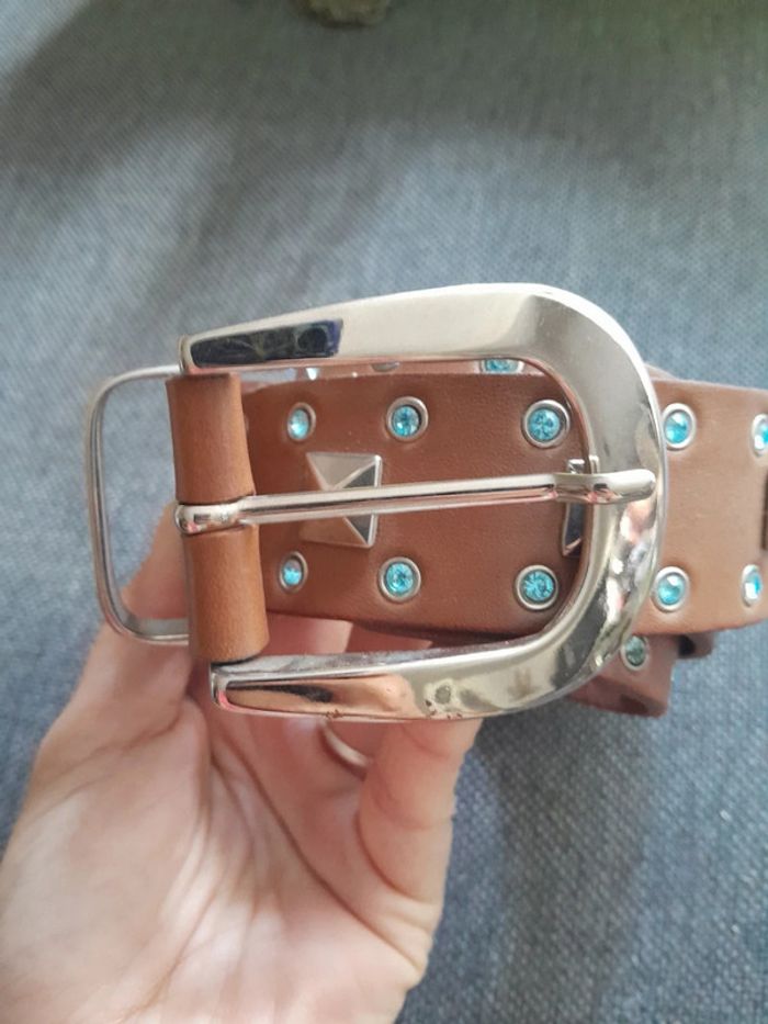 Ceinture marron strass bleu 100cm x 3,5cm - photo numéro 8