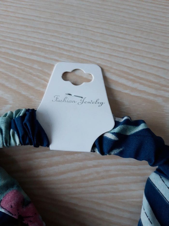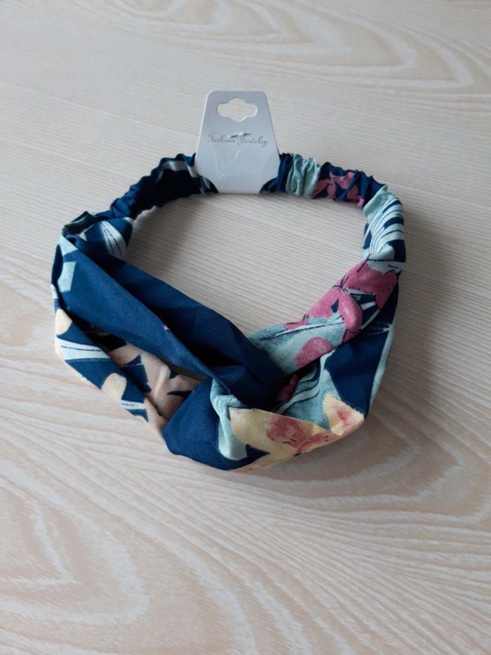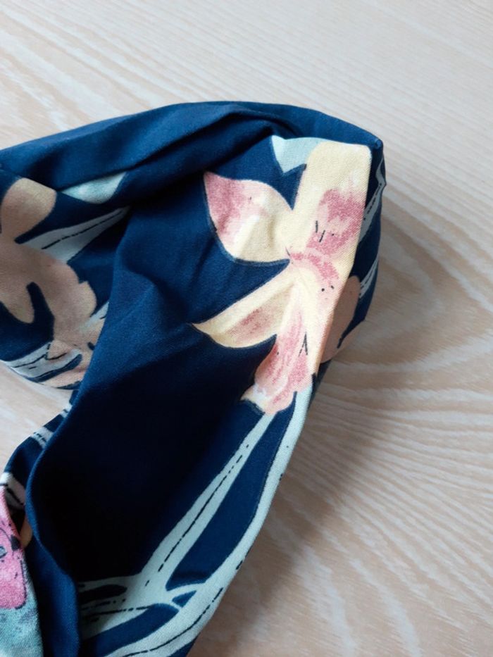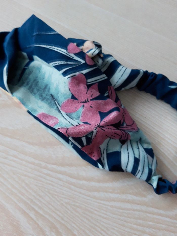 Bandeau bleu marine fleurs jaune et rose - photo numéro 3
